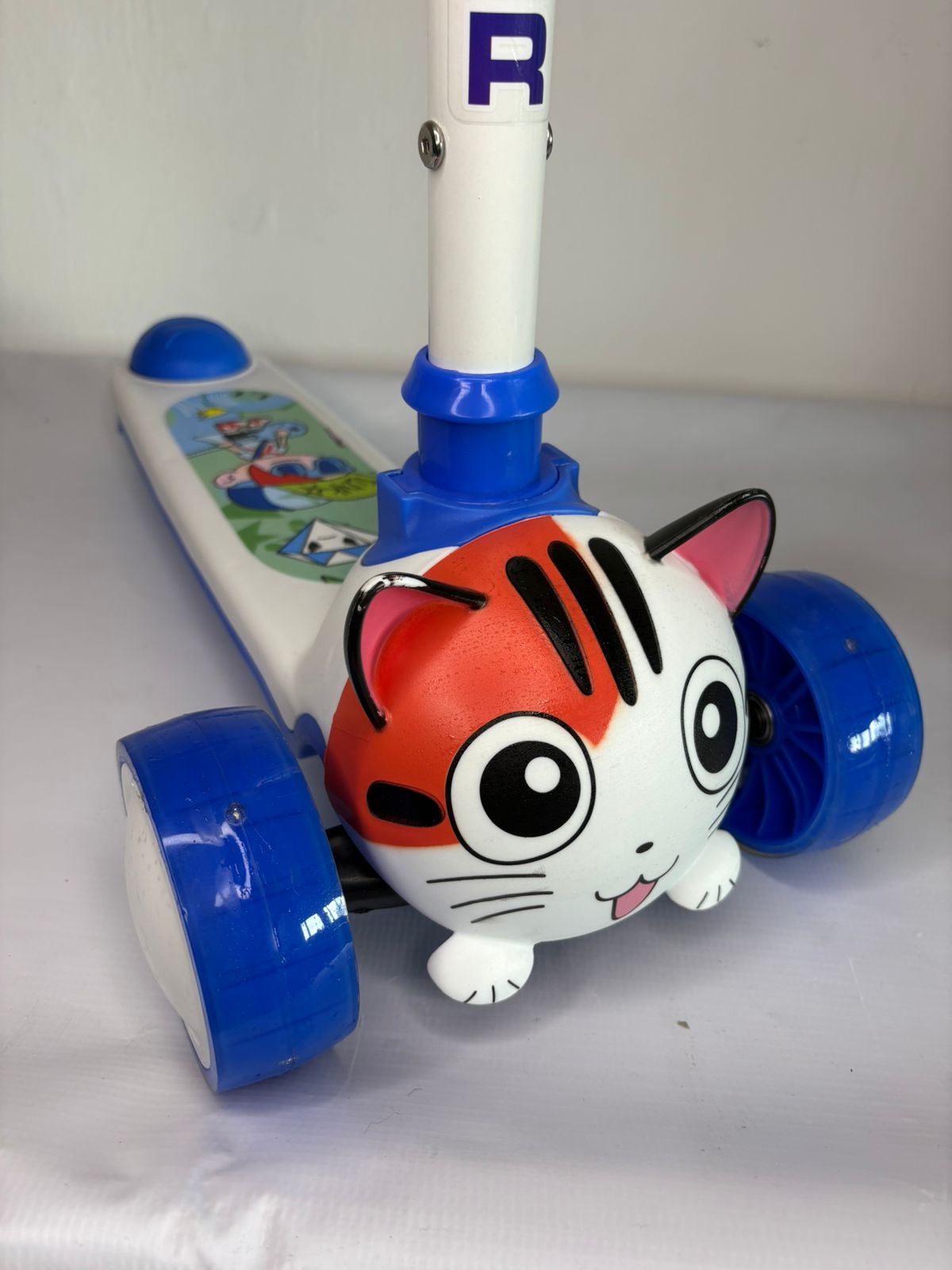 🛴 Scooter Infantil 3 Ruedas – Diseño Gatito (Blanco/Azul)